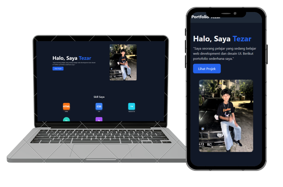 "Saya seorang pelajar yang sedang belajar web development dan desain UI. Berikut portofolio sederhana saya."